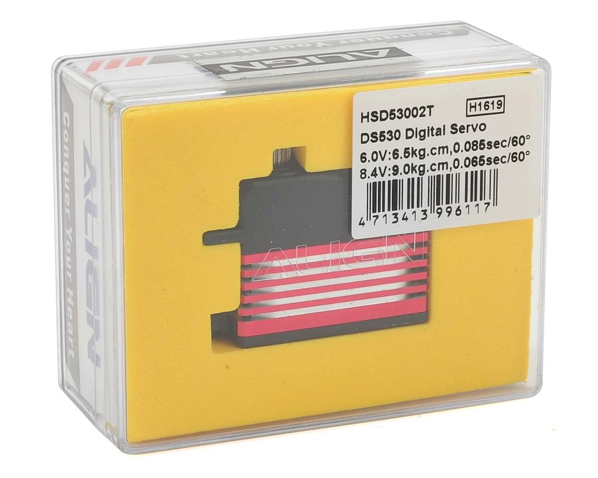 This is an Align DS530 Digital Servo. This metal gear servo features an aluminum middle case and high resolution for precise movements on cyclic applications for helicopters. Â