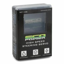 The EcoPower WP110S Cored Waterproof “High Speed” Metal Gear Digital Servo is a great option if you are looking for an affordable, waterproof RTR servo upgrade. This high speed version of the EcoPower WP110T cranks out 280 oz-in of torque at 7.4V, with 0.09sec/60°! This makes it a great choice for 1/10 bashing, 1/10 racing, RC boat and even RC airplane applications.