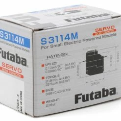 This is the Futaba S3114 Micro High Torque Servo with Micro Plug. COMMENTS: Do not use S3114 servos with gas or high power engine models, large gliders, or other models that require high torque Using supply voltage higher than 6V or applying high load to servo will shorten the life. Alway use the servo horn specially designed for this servo. Do not use conventional servo horns. Excessive force or shock to the servo horn may damage the ultra mini precision gears inside the servo. For the version with the Universal connector, order FUTM0414. jxs 4/19/07 ir/jxs
