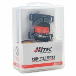 This is the Hitec HS-7115TH Ultra Premium High-Voltage Titanium Gear Slim Wing Servo. The HS-7115TH will fulfill every pilot’s dream when it comes to flying slim-wing aircraft. With its efficient, powerful three pole, metal-brushed motor and mighty titanium gear train, this servo brings the ultimate in high performance to your sailplanes, pylon racers and smaller scale models. The extremely thin, 8mm case with included mounting bracket allows it to fit into the tightest wings and most compact spaces. Constructed with dual ball bearings, the high voltage HS-7115TH provides an impressive 50 oz-in of torque at 7.4 volts