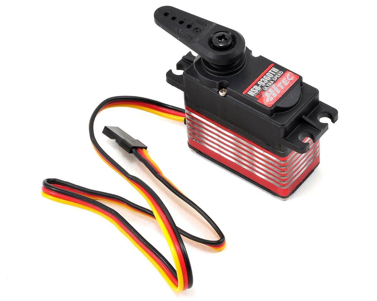 This is the Hitec HSB-9360TH High Speed Brushless Titanium Gear Servo. Pro level hobbyists demand the power and precision found in Hitec’s HSB-93XX servos. With lightweight and durable titanium gears, combined with efficient and powerful Neu brushless motors the HSB-9360TH delivers lightning fast response that is a perfect match for 3D helicopters.