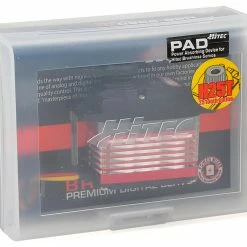 *NOTE: While compatible with most radio control devices, the regenerative braking feature of the HSB-9XXX series servos may cause a problem if the device cannot accept a backflow of current. The types of devices that cannot accept this backflow are: Voltage Regulators, Power Safe Receivers and certain BEC circuits whether stand alone or integrated within an Electronic Speed Control. Check with the manufacturer or the Hitec website for a list of compatible models. If your device cannot accept a current backflow, then you must install a PAD (Power Absorbing Device – Hitec 55756). A PAD is included with every Hitec brushless servo.