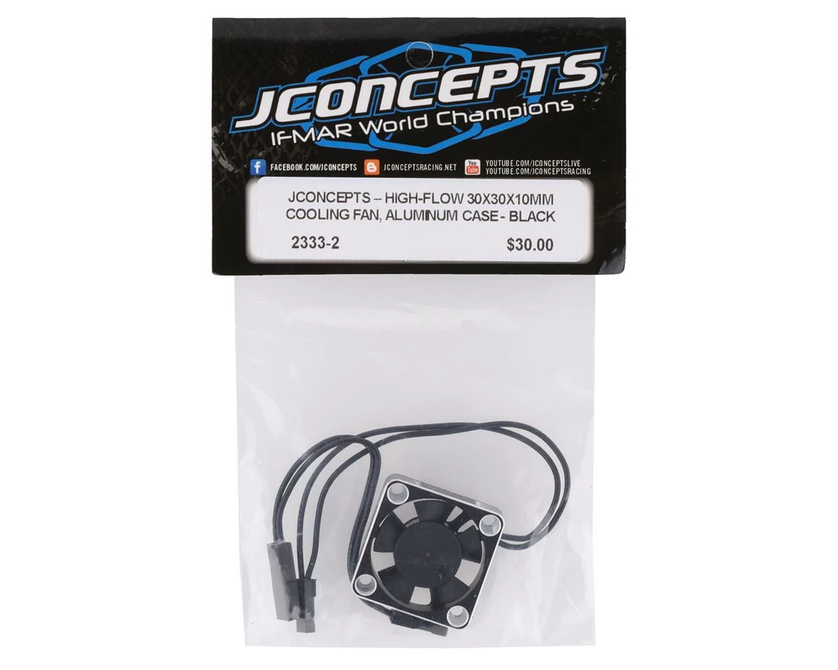 The JConcepts 30x30x10mm Aluminum High-Flow Cooling Fan adds cooling to the inside of a car and with a traditional size, can be mounted in various locations. The aluminum housing protects the inner fan and motor and is anodized in black, and laser etched with JConcepts.net logo. The item is prewired with JST plug and includes an extension wire for an assortment of fits and reaches inside the confines of a vehicle.