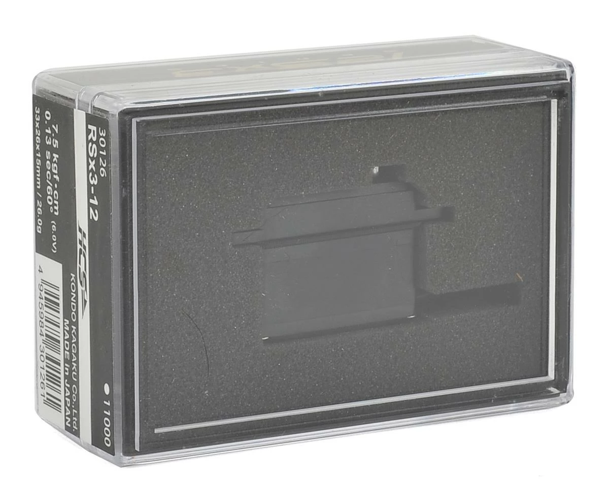 This is the KO Propo RSx3-12 Mini Digital Servo. The RSx3-12 is designed for electric 1/12th scale vehicles. This servo comes ready to operate at 6V or 7.4V. Programming of this servo via PC using ICS USB HS adapter and changing of model memories using the Servo Model Selector can also be performed, both units sold separately.