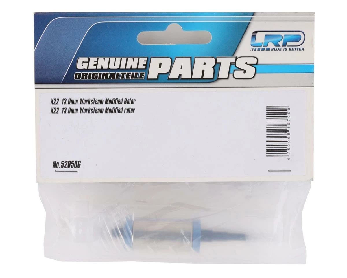 LRP X22 13.0mm Works Team Modified Rotor. This rotor is a great tuning option for the LRP X22 Motor. Smaller diameter rotors are designed for more rpm, while larger diameter rotors are made for more bottom-end torque. Package includes one rotor.