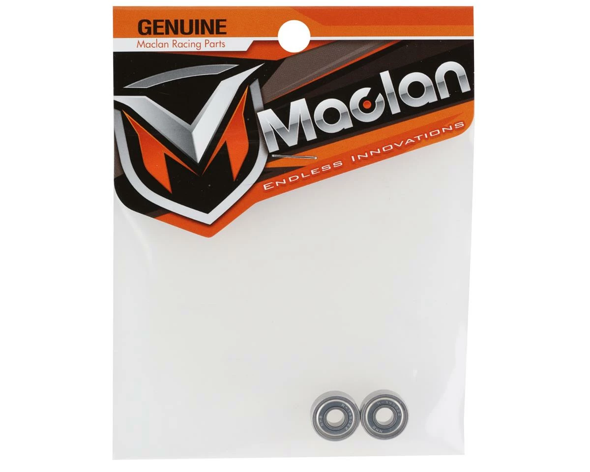 Maclan DRK 4-Pole Motor Bearing Kit. This is a replacement motor bearing kit intended for the Maclan DRK 4-Pole 6600kv drag racing motor (MCL1072). Package includes two replacement motor bearings.