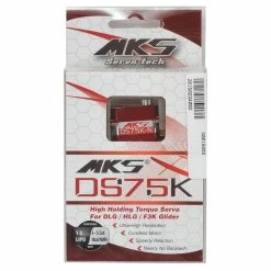 The MKS DS75K-N Titanium Gear High Speed Glider Wing Servo is perfect for discus launch, hand launch and F3K glider applications that require a precise wing servo with low power consumption and superior holding torque, combined with a precision machined aluminum case that has no mounting tabs.Â