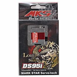 This is the MKS DS95i Titanium Gear High Speed Digital Micro Helicopter Tail Servo. With features that include a chrome/titanium alloy gear train, an aluminum center case, as well as an aluminum upper and lower case, this servo is practically bomb proof. Plus with its Super Narrow Pulse 760μs with AVCS, .03 transit speed and 33 oz/in of torque @ 6 volts, the DS95-i provides impressive reaction, speed and torque that makes it an excellent tail servo.