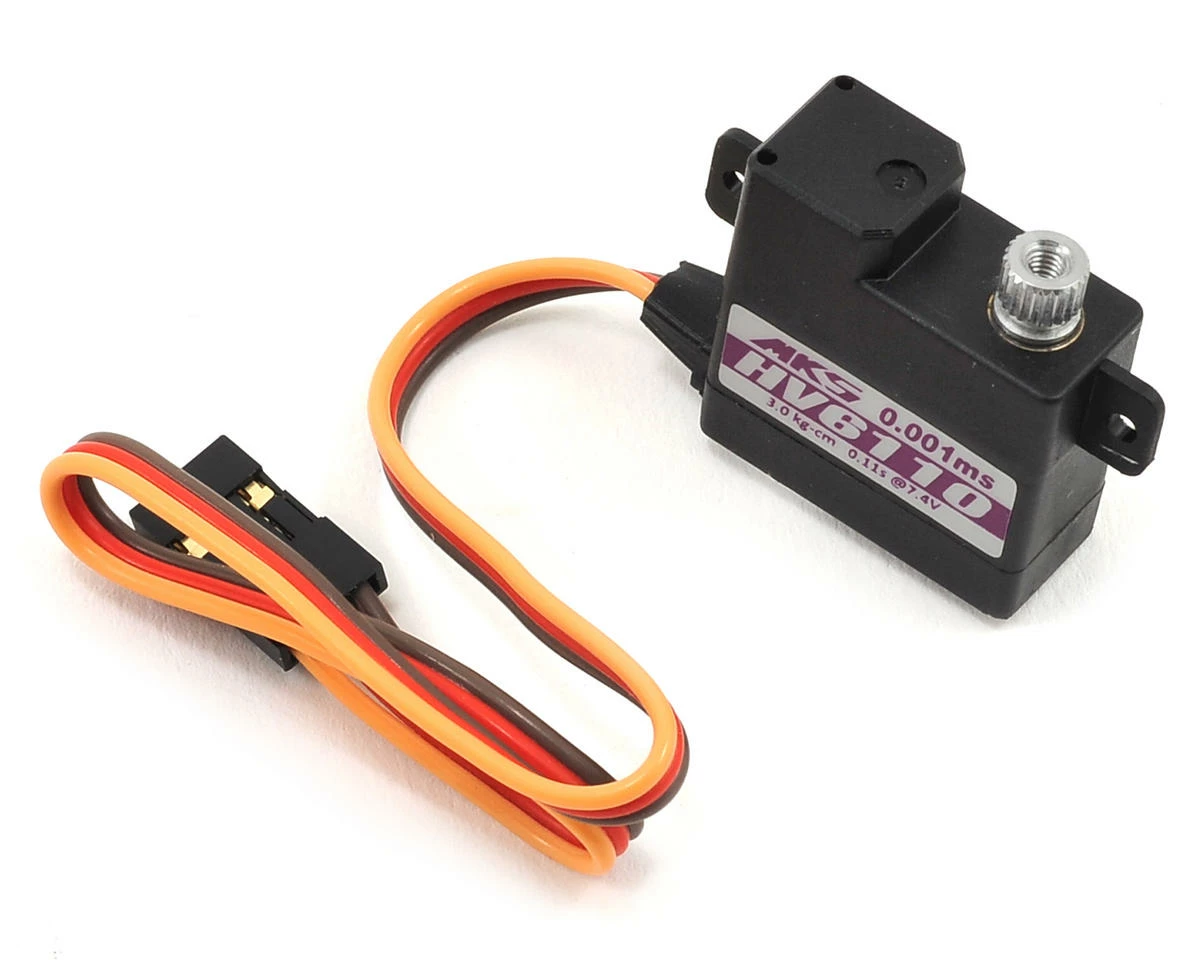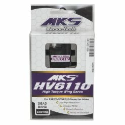 The MKS HV6110 Metal Gear Mini Servo is perfect for F3K, F3J, F5B, F3D, 2M and Slope glider applications that require a precise wing servo with low power consumption and superior holding torque, combined with the flexibility of high voltage circuitry.ย