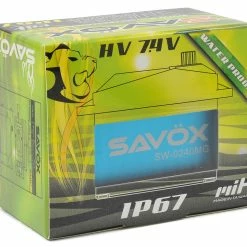 This is the Savox SW-0240MG “Super Speed” Waterproof Digital 1/5 Scale Servo. The SW-0240MG is a waterproof high torque, high speed 5th scale metal gear digital servo. This servo is high voltage capabe and features .15sec transit and 486.1oz-in torque @ 7.4V.