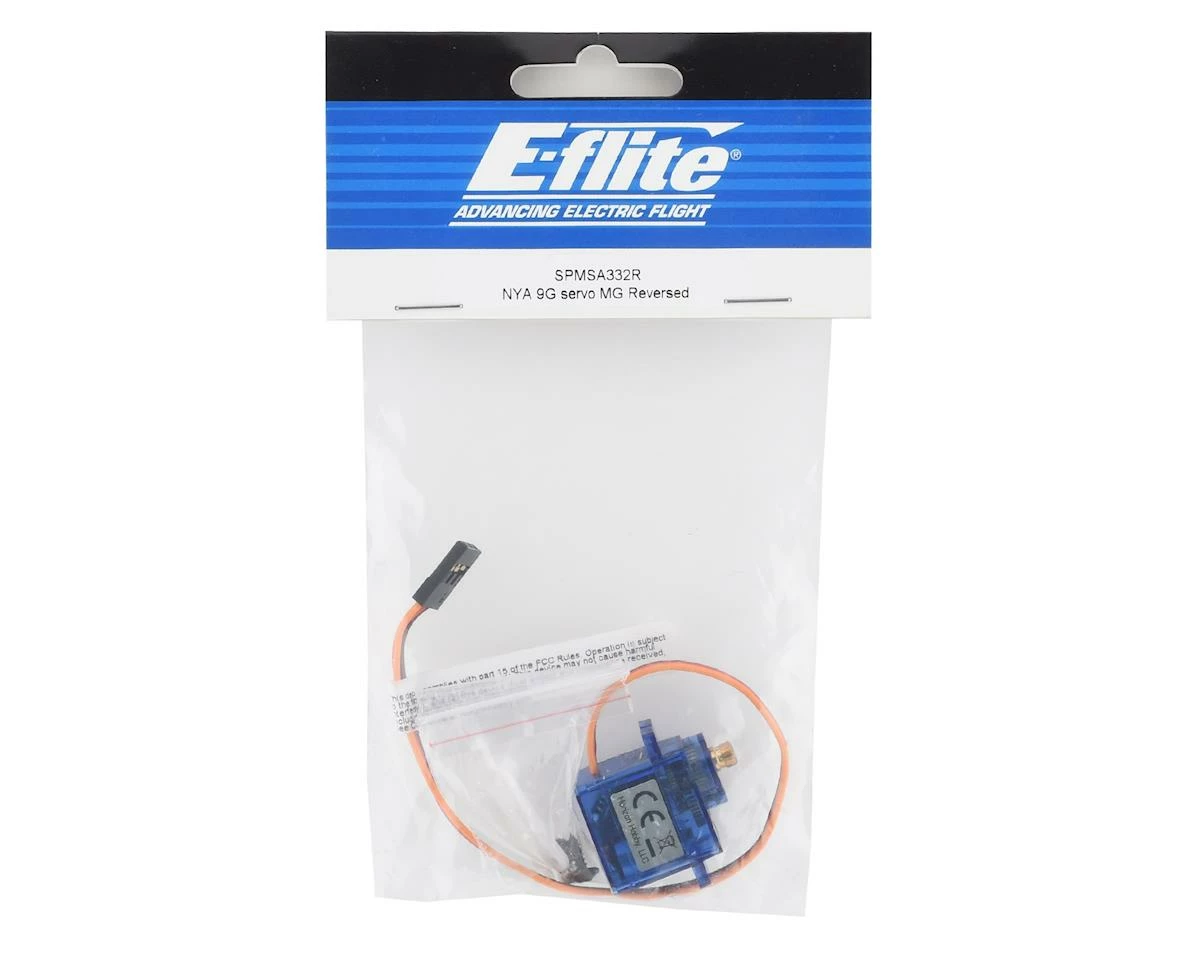 This is an E-Flite 9 Gram Metal Gear Servo Reversed, intended for use with the Timber X and EC-1500 Twin.Â