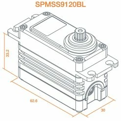 The Spektrum S9120BL 1/5 Digital Brushless High Speed High Torque Metal Gear Servo was developed to give 1/5 enthusiasts the huge torque and precision that can only come from brushless technology. Starting with a full aluminum case design with improved support for pins holding the gears, and an aluminum top plate with re-designed bearing house, the S9120 is tough. Brushless motor technology delivers more power than any previous Spektrum servo – the S9120 is rated at 1454 oz-in of torque, with a speed of 0.21 sec/60? at 8.4V. Additional improvements include a stealth black design and a thicker 18awg detachable wire. Plus, this servo is already race proven, having won the 2020 1/5 Worlds Buggy Class at So Cal Nitro.