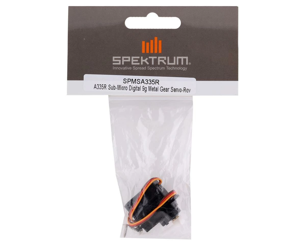 Spektrum RC A335R 9g Sub-Micro Metal Gear Digital Servo. This replacement servo is intended for the E-flite F-16 Falcon 80mm. Package includes one reversed servo.