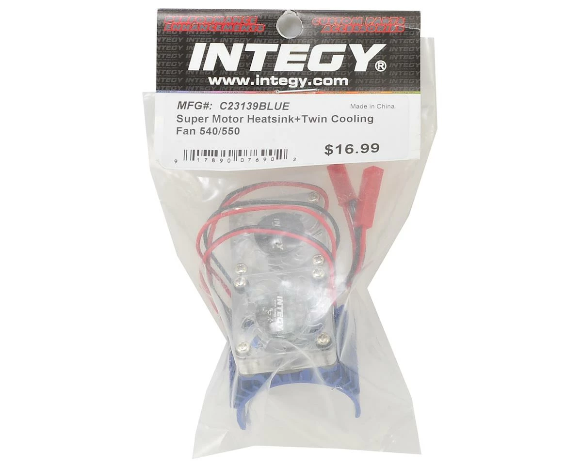 The Integy Super Twin Fan 540/550 Motor Heatsink will help keep your temperatures in check, and your motor running efficient and cool. The motor heatsink clips right onto your RC vehicle’s motor, and features multiple cooling fins and twin fans to create a great heat-dissipating fan system.