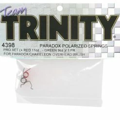 This is a pack of two Trinity Polarized Overhead Brush Springs. These springs are compatible with the Trinity Paradox and Chameleon motors. Package includes one Red 11oz spring and one Green 9oz spring.
